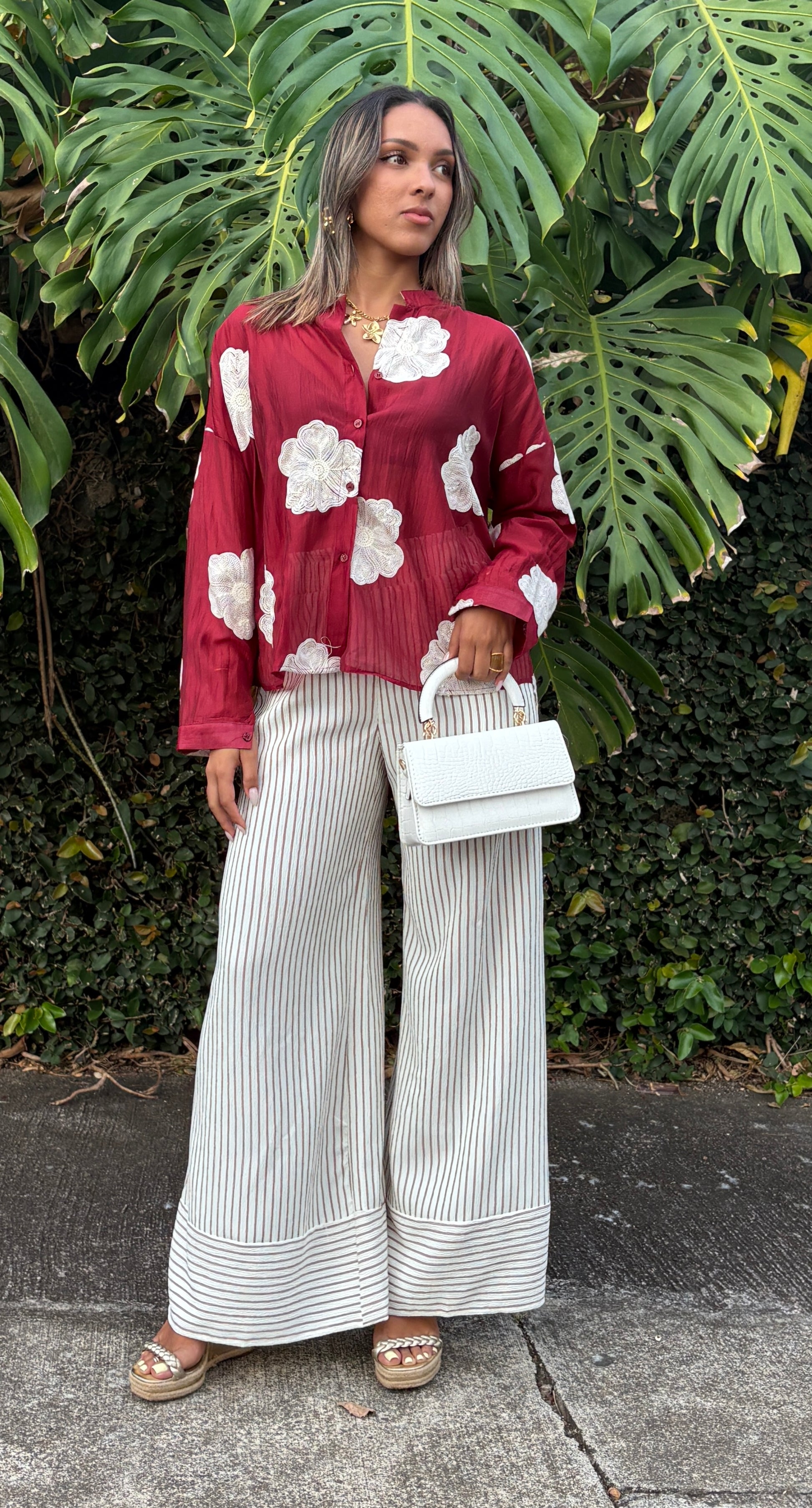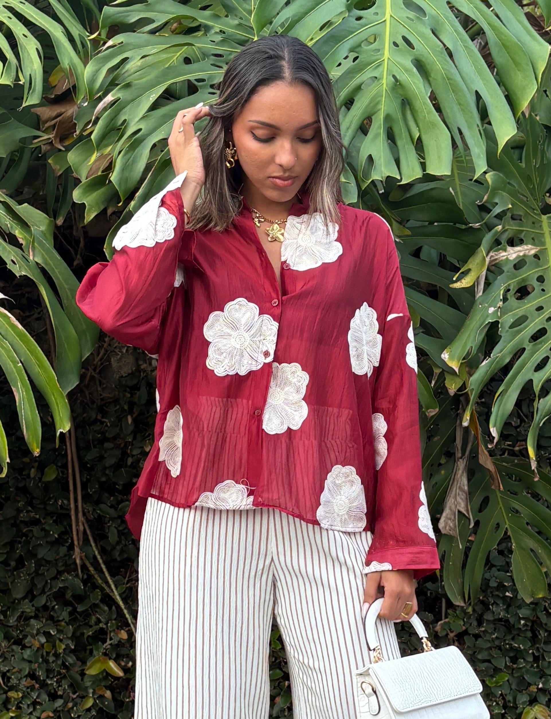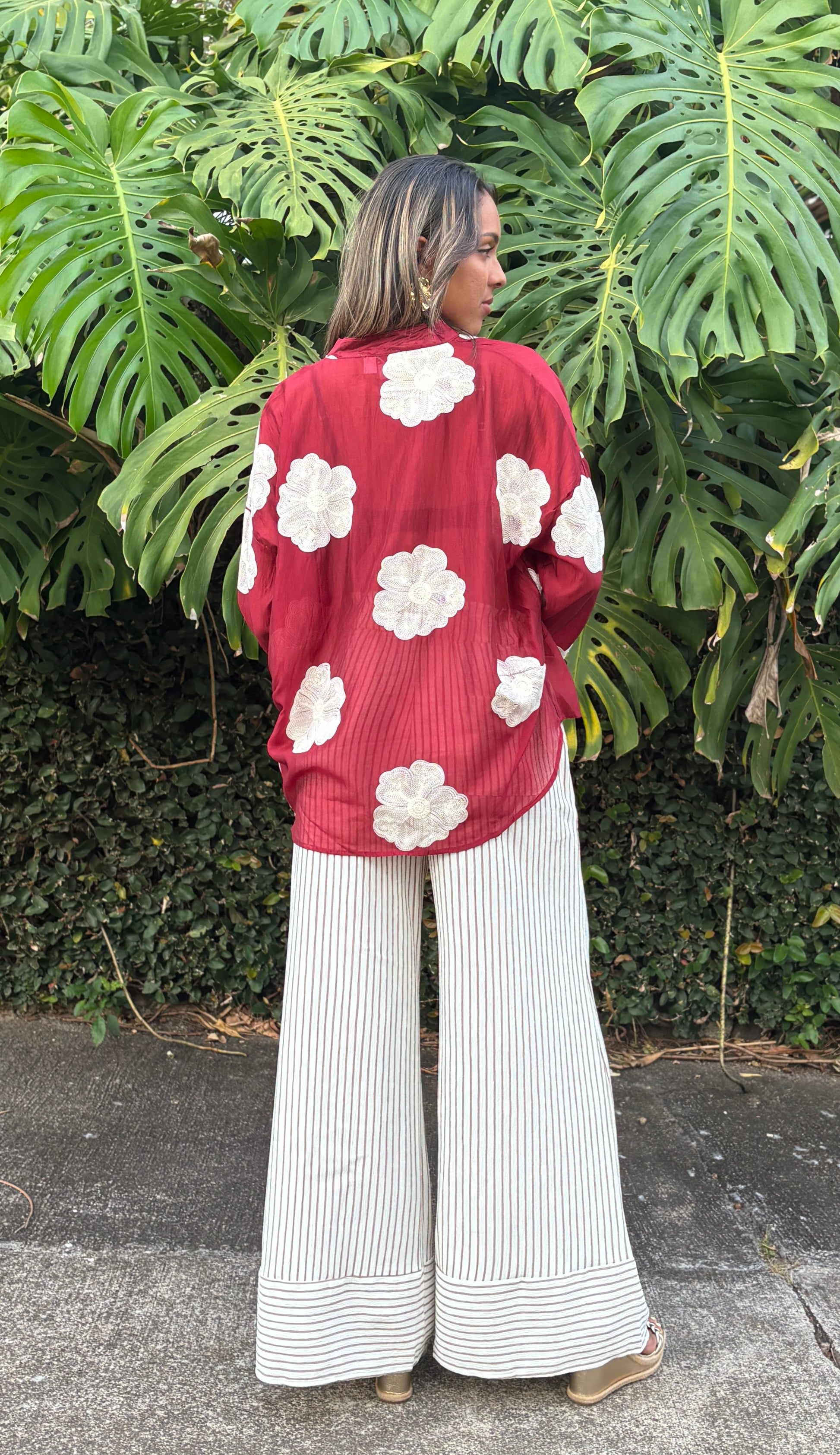 - Couleur : Rouge avec fleurs blanches